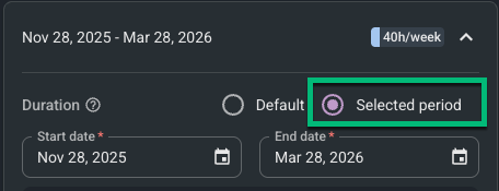You can also set the work schedule to apply to only a selected period of time.